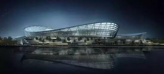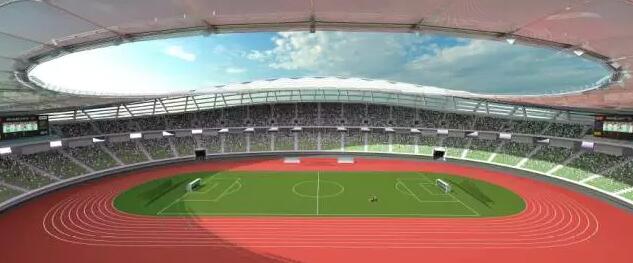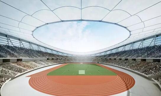 目前國(guó)內(nèi)采用單層索網(wǎng)結(jié)構(gòu)的場(chǎng)館跨度為100米左右,而園區(qū)體育中心體育場(chǎng)跨度達(dá)到了260米,為國(guó)內(nèi)最大跨度的單層索網(wǎng)結(jié)構(gòu)。該結(jié)構(gòu)為中間開(kāi)孔的單層索網(wǎng)體系,設(shè)計(jì)思路來(lái)源于預(yù)張拉鋼條的自行車(chē)車(chē)輪,主要包括結(jié)構(gòu)柱、外壓環(huán)、徑向索以及內(nèi)環(huán)索,整個(gè)輪輻式索網(wǎng)屋蓋支撐在外圈傾斜的V型鋼柱上,形成了一個(gè)優(yōu)美的馬鞍型。體育場(chǎng)索網(wǎng)由40榀徑向索和內(nèi)側(cè)8根受拉環(huán)向索組成,全部索體均采用高標(biāo)準(zhǔn)的進(jìn)口密閉鎖,在索網(wǎng)體系上安裝鋼拱并覆蓋張拉PTFE膜材形成膜屋面,膜屋面投影總面積約為31900平方米,最大膜單元面積為1200平方米。