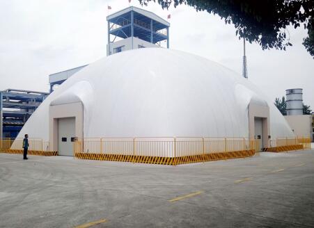 早在2015年,神華鄂爾多斯煤制油分公司就率先將氣膜建筑系統(tǒng)應(yīng)用于殘?jiān)卫眄?xiàng)目上。該公司每天產(chǎn)2400噸煤直接液化殘?jiān)?,以前采用散放、汽運(yùn)方式轉(zhuǎn)運(yùn)出廠,現(xiàn)場(chǎng)環(huán)境較差,且運(yùn)行成本較高,環(huán)保壓力很大。按照環(huán)保規(guī)定的“防滲、防風(fēng)、防雨”的要求,該項(xiàng)目現(xiàn)有殘?jiān)娣旁O(shè)施遠(yuǎn)不能滿足要求。
