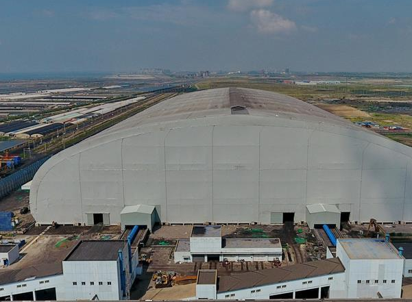 該儲(chǔ)煤棚儲(chǔ)煤量達(dá)40萬(wàn)噸,它也是目前國(guó)內(nèi)最大跨度的儲(chǔ)煤棚。