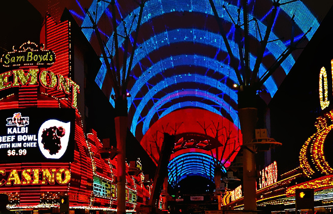 最早的“天幕”創(chuàng)意來自二十多年前美國賭城拉斯維加斯弗里蒙特大街。弗里蒙特大街位于拉斯維加斯的老城區(qū),是賭城文化的最早發(fā)源地。然而在數(shù)公里外的新賭城投入使用后,老賭城80%的客流被搶走。為了對抗競爭,四家飯店聯(lián)合耗資6000萬美金打造了當(dāng)時世界上最長的400米燈光長廊,一舉扭轉(zhuǎn)了競爭帶來的頹勢,成為賭城一個重要的觀光景點(diǎn)。極負(fù)盛名的“天幕”也就由此誕生。