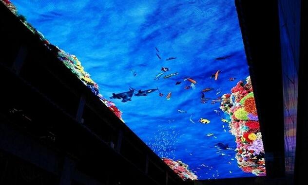 呈現(xiàn)畫面震撼:天幕投影主要還是用來呈現(xiàn)宇宙、海洋等大場面的影片,超大的清晰的畫面以及立體聲效呈現(xiàn)出的畫面更加震撼。