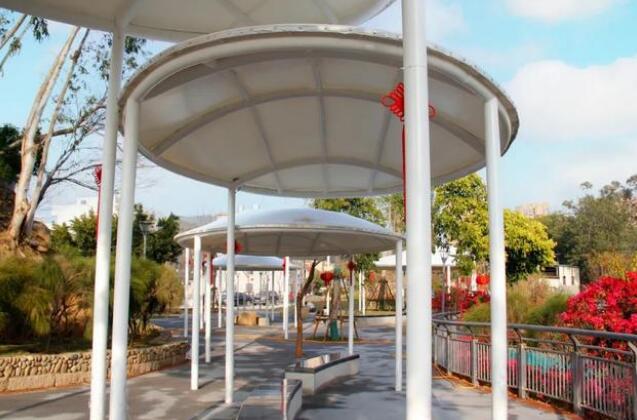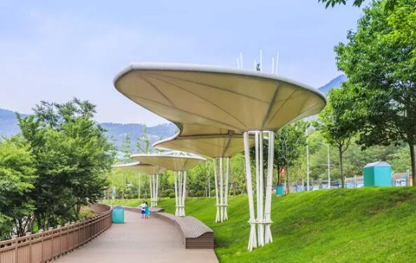 在已建成的口袋公園中,張拉膜結(jié)構(gòu)設(shè)施的身影屢屢出現(xiàn),正是因?yàn)閺埨さ奶匦允怪艿奖姸嘣O(shè)計(jì)者們的垂青,它體量可大可小,設(shè)計(jì)感強(qiáng),可作為遮陽遮雨,非機(jī)動(dòng)車棚,入口標(biāo)識(shí)等設(shè)施存在,也能作為景觀小品存在。張拉膜還可選用彩色膜材來打造,與口袋公園活潑明快的設(shè)計(jì)理念一致,若配上燈光裝置,夜晚更是溫馨。
