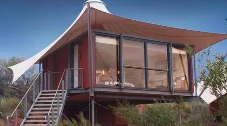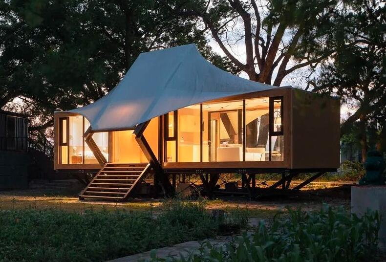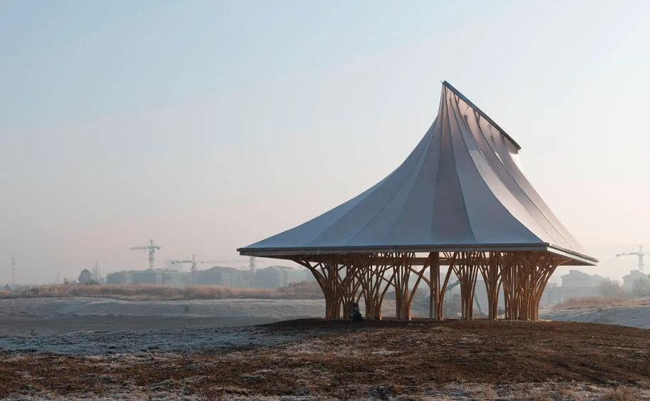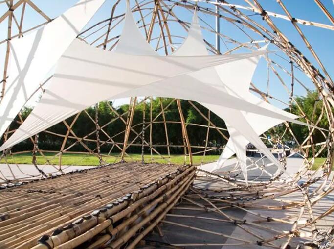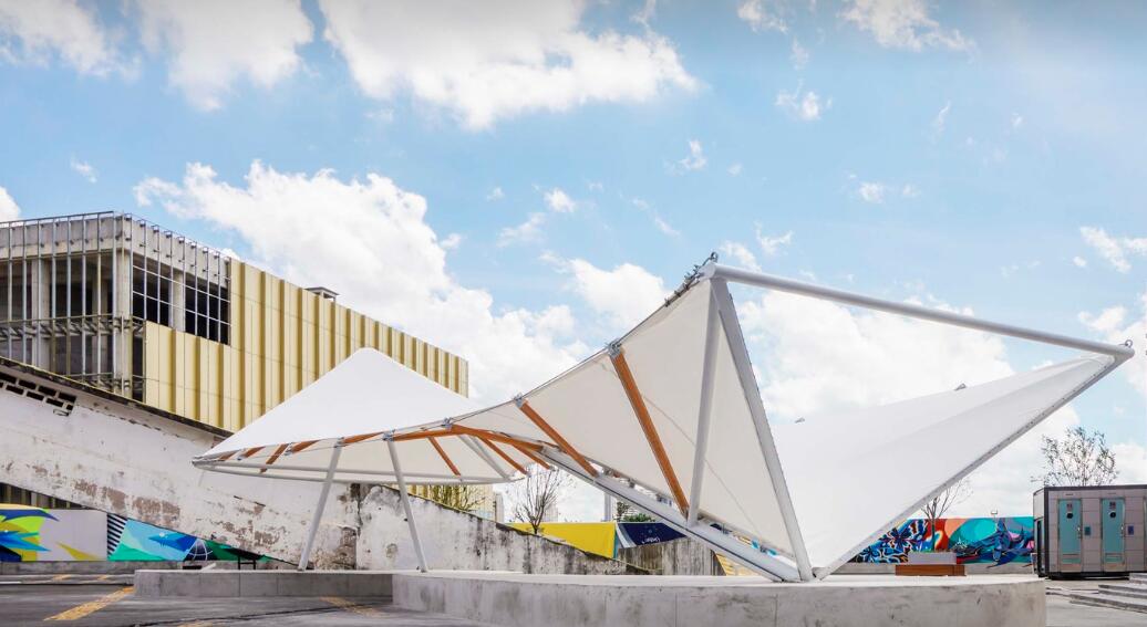 那么,張拉膜結構過時了嗎?并沒有,在流行混搭的時代,膜結構能駕馭的建筑形式也更加多樣化,它能搭配的不再是鋼結構,而與木結構、竹結構,集裝箱,甚至混凝土結構搭配也能呈現耳目一新的效果。它可以是小體量建筑、景觀構筑物、也可以是大跨度建筑屋頂及建筑外立面等。