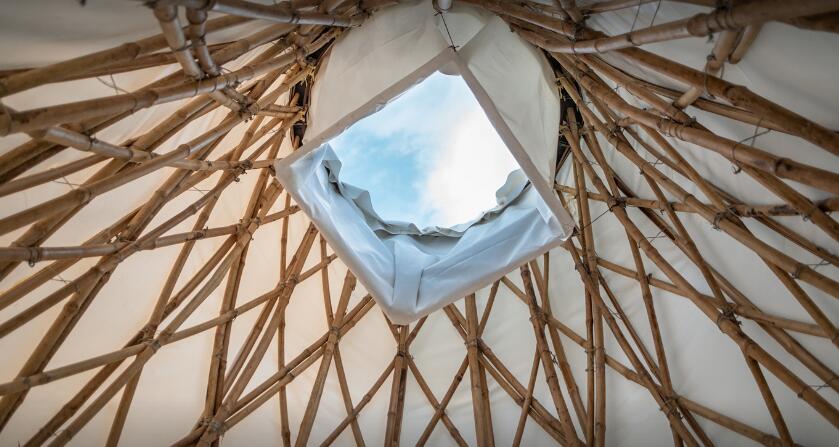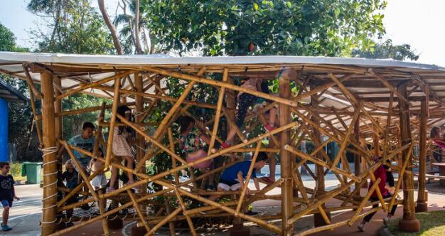 這個(gè)項(xiàng)目位于城市中心,并被實(shí)際建造出來,其目標(biāo)是向世界展示竹子作為一種碳足跡極低的生態(tài)材料在建筑業(yè)中的可能性。利用現(xiàn)代的竹子處理技術(shù)來建造大型的持久結(jié)構(gòu),此外,外圍護(hù)采用目前流行的新材料膜材來實(shí)現(xiàn),更凸顯其環(huán)保安全性能。