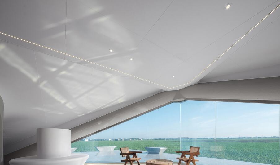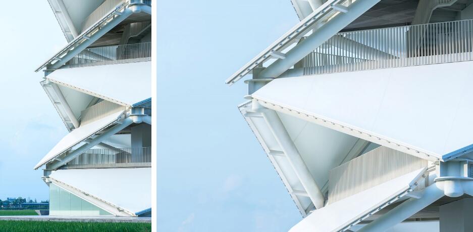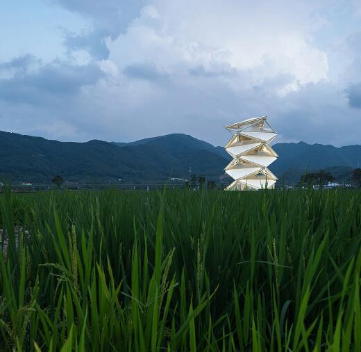 設(shè)計(jì)的靈感來源于對成熟稻穗的抽象表達(dá),以統(tǒng)一的三角形為母題完成了整個(gè)構(gòu)筑物的形式和結(jié)構(gòu),并在垂直高度上變化、旋轉(zhuǎn)和重構(gòu)。