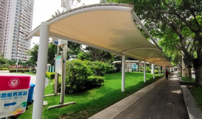 張拉膜連廊多用于交通樞紐、景區(qū)碼頭等場所,通過連續(xù)頂棚覆蓋,實(shí)現(xiàn)無風(fēng)雨換乘或通行。