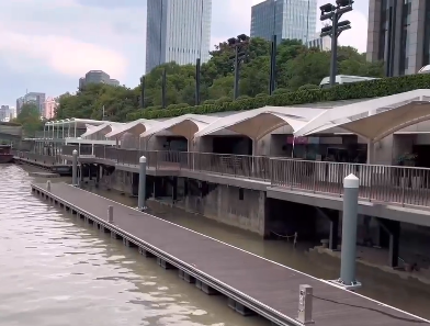 北外灘空中連廊示范段首創(chuàng)帶膜結(jié)構(gòu)陽光棚,總長4.5公里成為世界最長城市連廊系統(tǒng)。