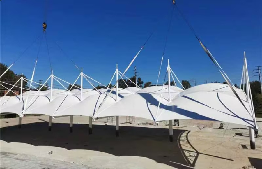 中山膜結(jié)構(gòu)停車棚工程施工進展