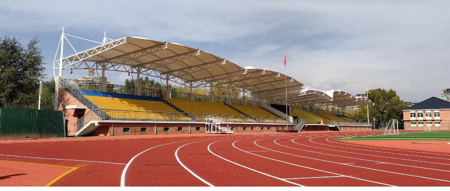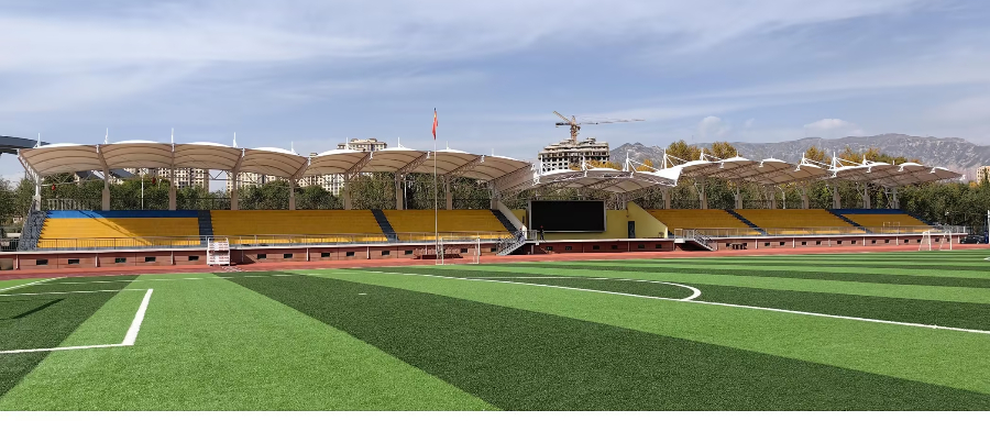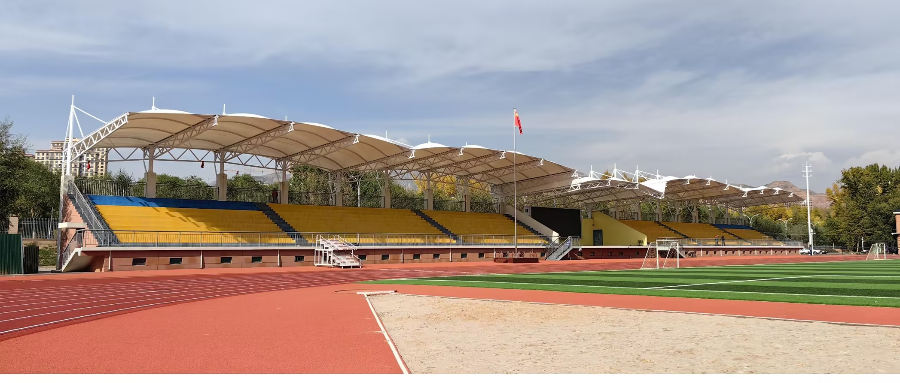 青海海東三中看臺(tái)膜結(jié)構(gòu)雨棚工程近日完工,工程體量包含看臺(tái)及主席臺(tái)的雨棚安裝,設(shè)計(jì)為懸挑張拉結(jié)構(gòu),整體造型美觀,結(jié)構(gòu)穩(wěn)固,視野無遮擋,大大提升了校園環(huán)境。
