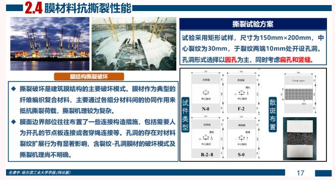 中國礦業(yè)大學教授張營營,在青年論壇中作了題為《織物類建筑膜材料應用新場景及力學性能研究進展》的報告?,F(xiàn)截圖分享,一起學習!