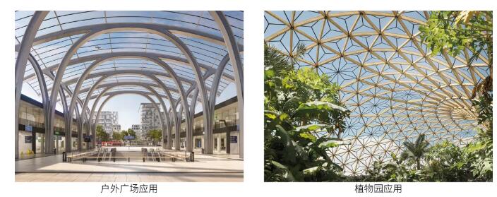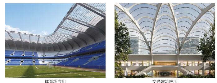 (2) 整體結(jié)構(gòu)輕盈:STFE建筑表皮比玻璃 / 鋼結(jié)構(gòu)系統(tǒng)輕10倍以上,可降低整體結(jié)構(gòu)強度要求,低碳應用。