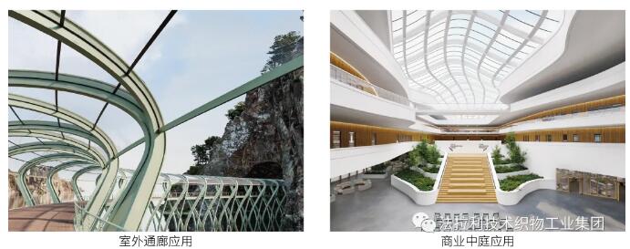 STFE膜是在高韌度聚芳酯纖維網(wǎng)格上進行特種含氟聚合物透明膜覆膜而成的新型高透光膜材,是一款真材實料的“軟玻璃”;STFE膜材單方重量為900g,不到1kg/m2(一般中空lowE玻璃重量為30kg/m2左右),可大面積張拉,結(jié)構(gòu)輕盈又百分百防水。與此同時STFE膜又具有高透光且高透景的特點,適用于需要自然采光和合適紫外線照射的動植物園,陽光房,體育場,以及需要透光且透明的公共建筑(如交通通道,購物中心,天幕,中庭等),是應用越來越多的新型膜結(jié)構(gòu)材料。
