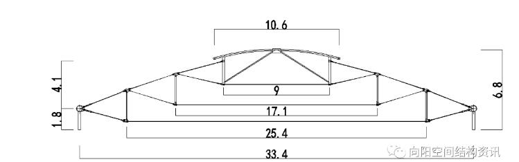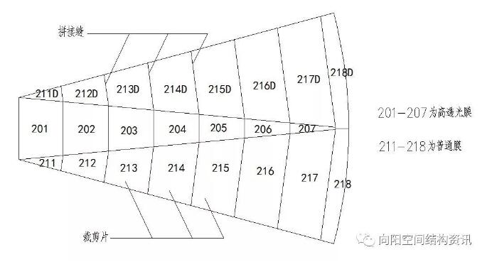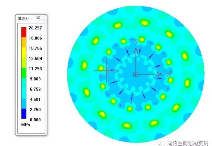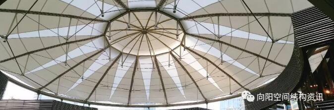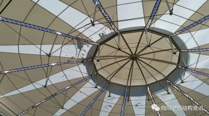 需要說明的是,內(nèi)環(huán)尺寸是由建筑設計確定的,并且這里膜面錯層,且期間是開敞的,以達到通風的效果。如果僅從結(jié)構(gòu)考慮,內(nèi)環(huán)可以再小很多,結(jié)構(gòu)自重會更輕。